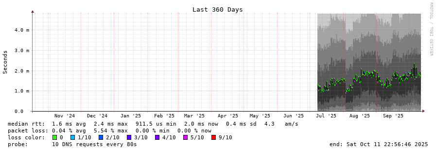 5 > one.one.one.one (1.1.1.1) [AS13335] 0.303ms 0.361ms 0.256ms