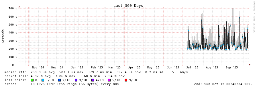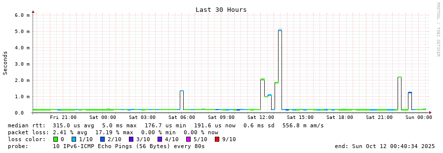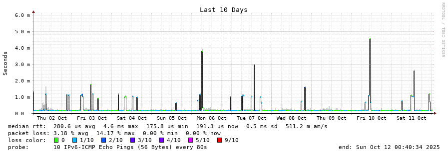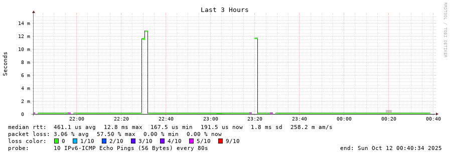 traceroute to 2620:119:53::53 (2620:119:53::53), 30 hops max, 80 byte packets - Generated at 2025-10-11 22:45:01 3 > 4 > dns.umbrella.com (2620:119:53::53) [AS36692] 0.216ms 0.187ms 0.164ms