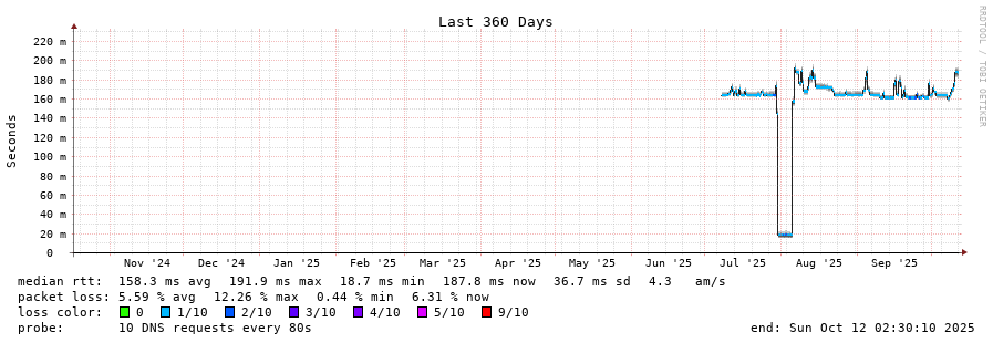 traceroute to 2001:7fd::1 (2001:7fd::1), 30 hops max, 80 byte packets - Generated at 2025-10-12 00:45:01