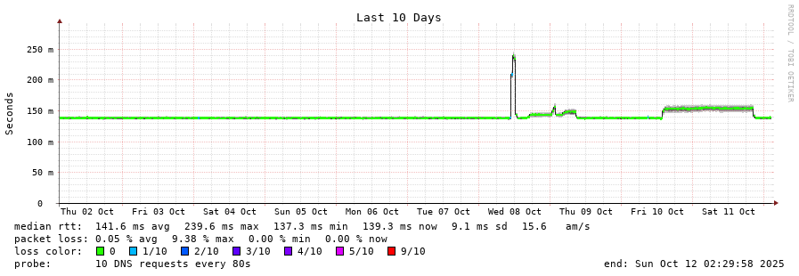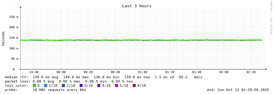 17 > l.root-servers.net (199.7.83.42) [AS7575/AS14259/AS16637/AS18451/AS19905/AS20144/AS27678/AS28513/AS38082/AS38456/AS38880/AS133296/AS262249] 139.372ms 139.389ms 139.409ms
