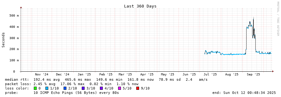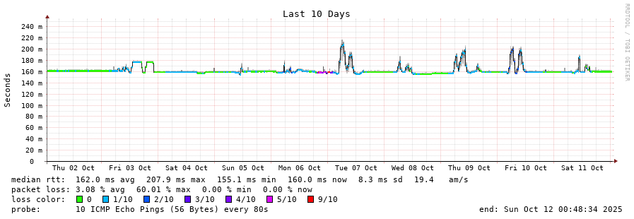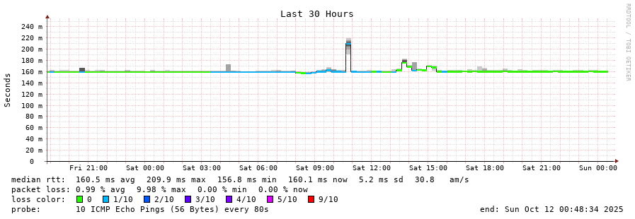 traceroute to 122.160.40.1 (122.160.40.1), 30 hops max, 60 byte packets - Generated at 2025-10-11 22:45:01