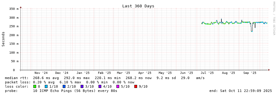 12 > 80.84.20.244 (80.84.20.244) [AS6774] 253.372ms 255.228ms 253.591ms