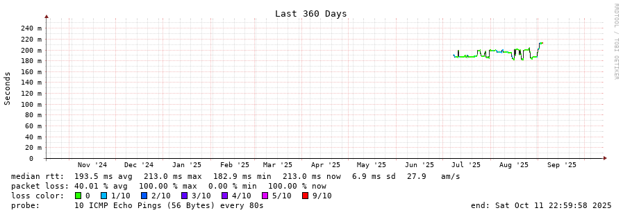 traceroute to 213.179.210.53 (213.179.210.53), 30 hops max, 60 byte packets - Generated at 2025-10-11 22:45:01
