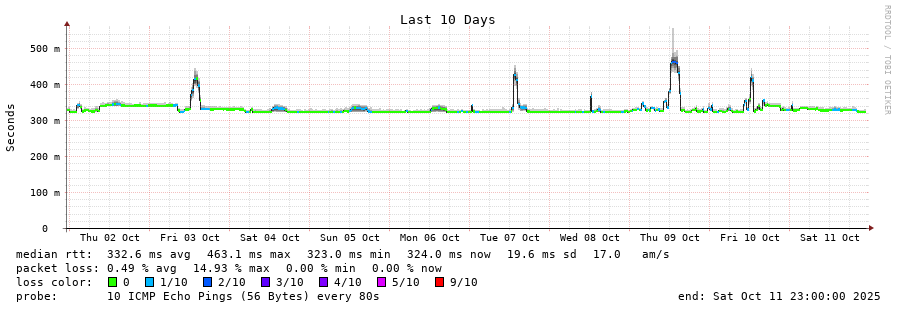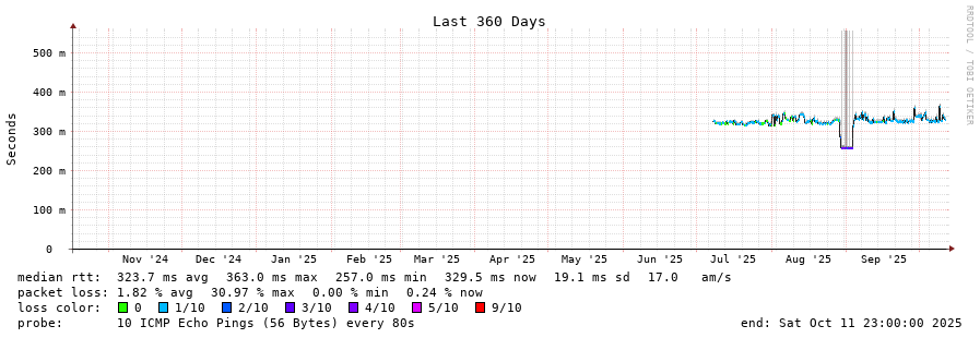 traceroute to 175.176.168.1 (175.176.168.1), 30 hops max, 60 byte packets - Generated at 2025-10-11 22:45:01