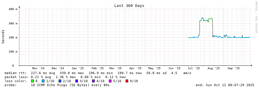 14 > 218.189.5.53 (218.189.5.53) [AS9304] 255.341ms 255.276ms 255.277ms