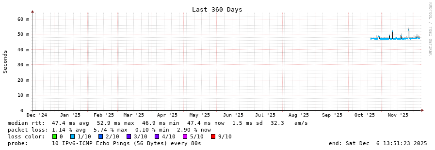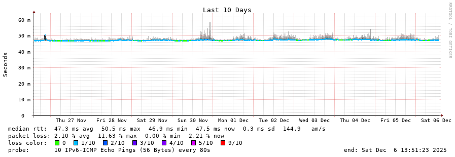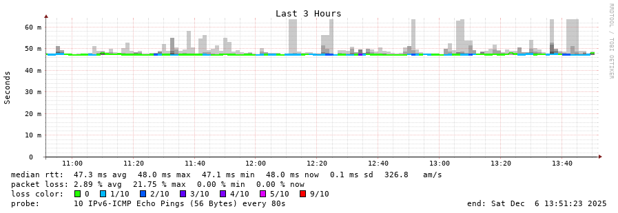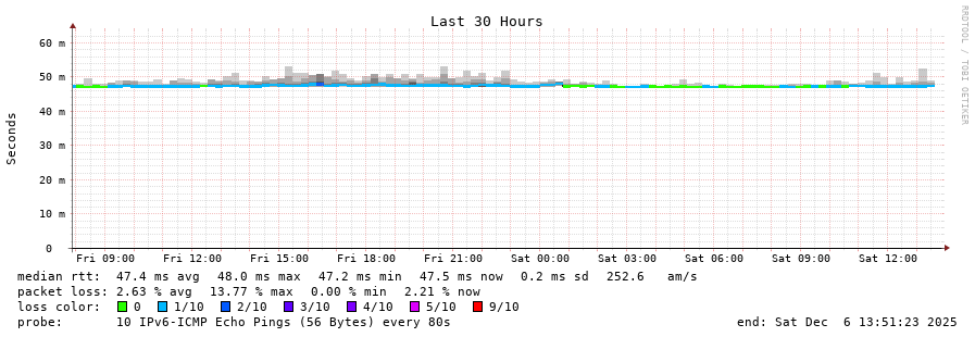 traceroute to 2c0f:5400:2:15::1 (2c0f:5400:2:15::1), 30 hops max, 80 byte packets - Generated at 2025-12-06 13:45:01
