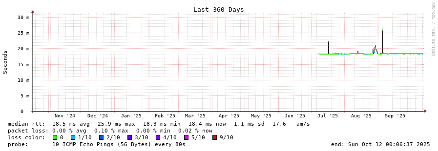 traceroute to 35.220.99.235 (35.220.99.235), 30 hops max, 60 byte packets - Generated at 2025-10-11 22:45:01 3 > 4 > 5 > 6 > 7 > 8 > 235.99.220.35.bc.googleusercontent.com (35.220.99.235) [AS15169/AS396982] 18.462ms 18.511ms 18.464ms