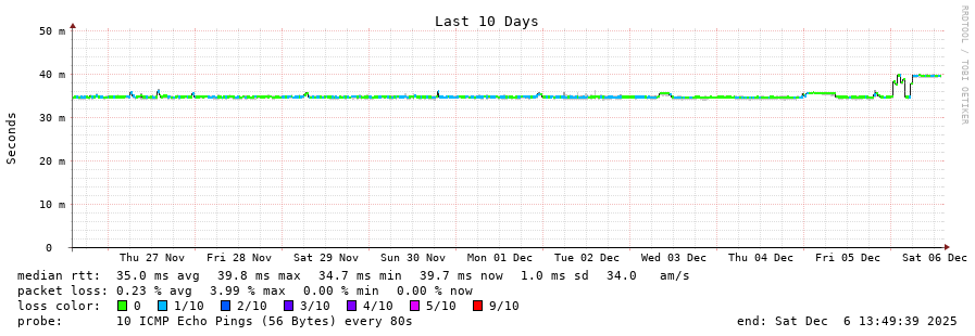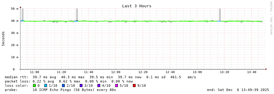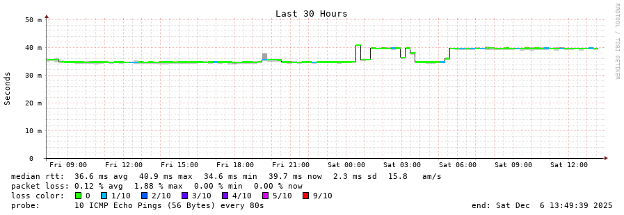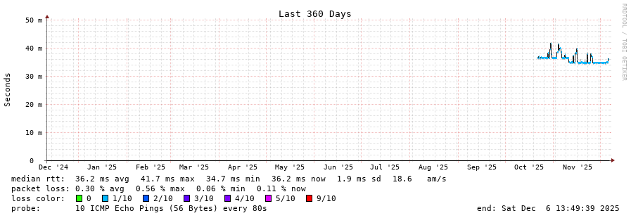 traceroute to 80.96.81.1 (80.96.81.1), 30 hops max, 60 byte packets - Generated at 2025-12-06 13:30:01 3 > 4 > 5 > 6 > 7 > 8 > 9 > 10 > 11 > code-vault.net (80.96.81.1) [AS211327] 39.901ms 39.918ms 39.462ms