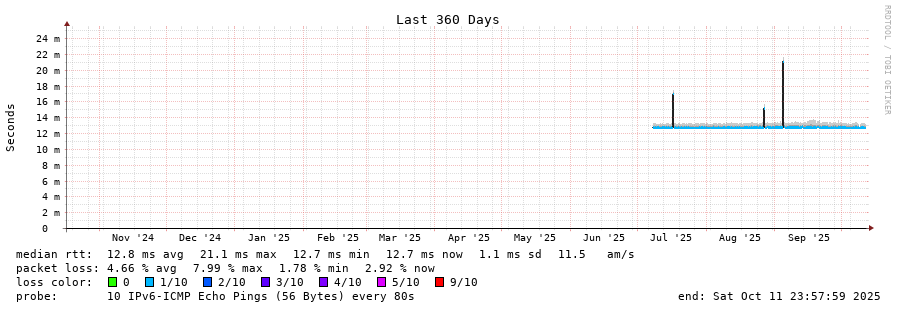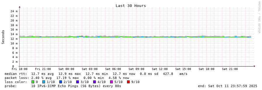 traceroute to 2a01:4f8:d0a:529e::2 (2a01:4f8:d0a:529e::2), 30 hops max, 80 byte packets - Generated at 2025-10-11 22:30:01