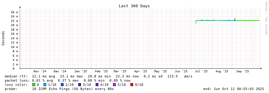 11 > web01.web.drei.host (194.24.129.67) [AS25255] 22.358ms 22.350ms 22.294ms