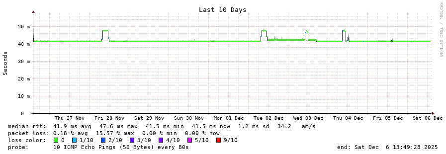 8 > vix.roedu.net (193.203.0.119) [AS1120] 35.651ms 35.593ms 35.688ms