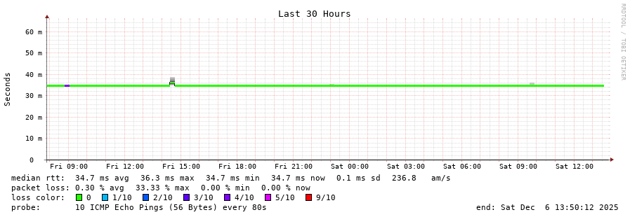 14 > zeus.radio.pub.ro (141.85.160.26) [AS2614] 34.724ms 34.701ms 34.703ms