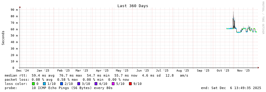 traceroute to 185.45.15.70 (185.45.15.70), 30 hops max, 60 byte packets - Generated at 2025-12-06 13:45:01