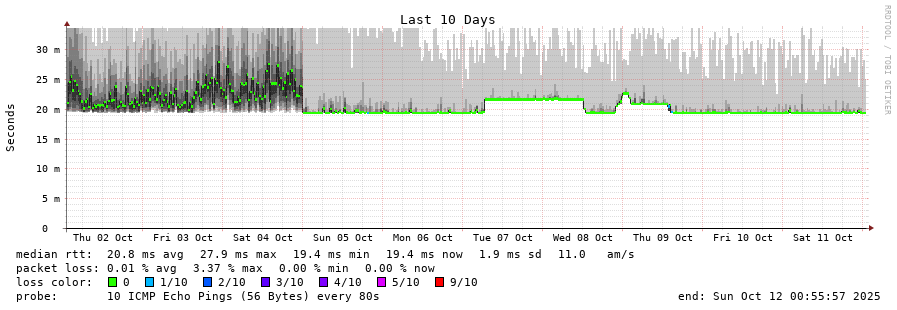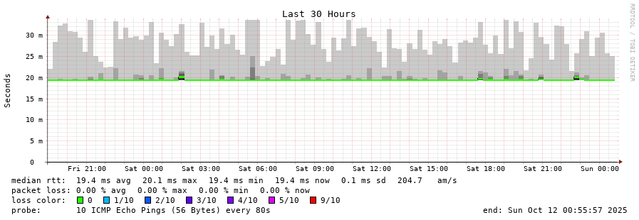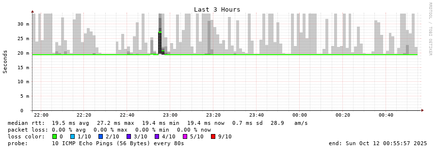 traceroute to 5.104.138.123 (5.104.138.123), 30 hops max, 60 byte packets - Generated at 2025-10-11 22:45:01 3 > 4 > 5 > 6 > 7 > 8 > 5.104.138.123 (5.104.138.123) [AS43350] 19.448ms 19.423ms 19.442ms