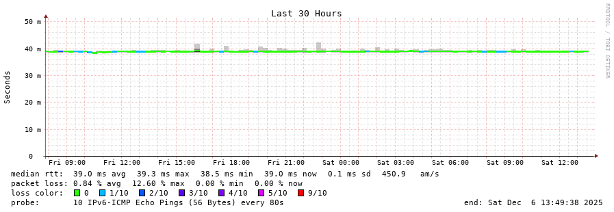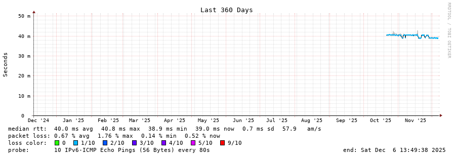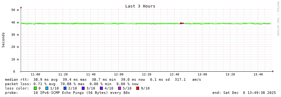 traceroute to 2a0b:2f00:0:234::151 (2a0b:2f00:0:234::151), 30 hops max, 80 byte packets - Generated at 2025-12-06 13:45:01