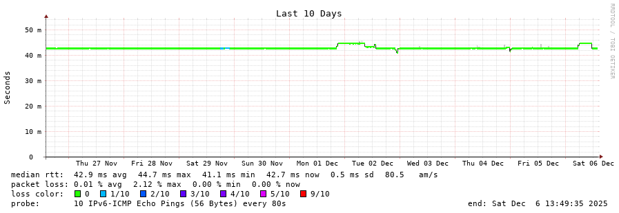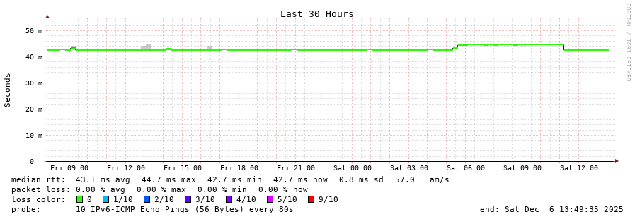 traceroute to 2001:67c:10:1102::11 (2001:67c:10:1102::11), 30 hops max, 80 byte packets - Generated at 2025-12-06 13:45:01