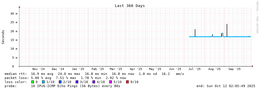 traceroute to proof.ovh.net (2001:41d0:242:d300::), 30 hops max, 80 byte packets - Generated at 2025-10-12 00:45:01
