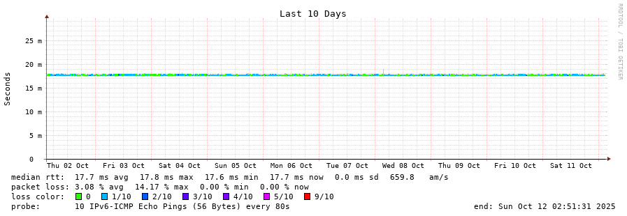 14 > lil2-gra.smokeping.ovh.net (2001:41d0:302:1000::18:665e) [AS16276] 17.837ms 17.784ms 17.822ms