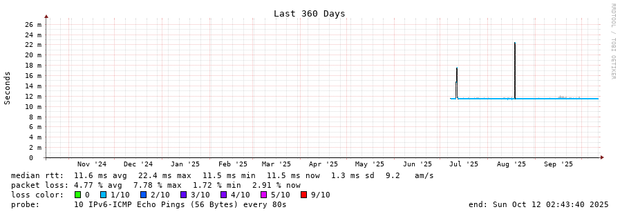 traceroute to 2001:41d0:601:2000::768 (2001:41d0:601:2000::768), 30 hops max, 80 byte packets - Generated at 2025-10-12 00:30:01