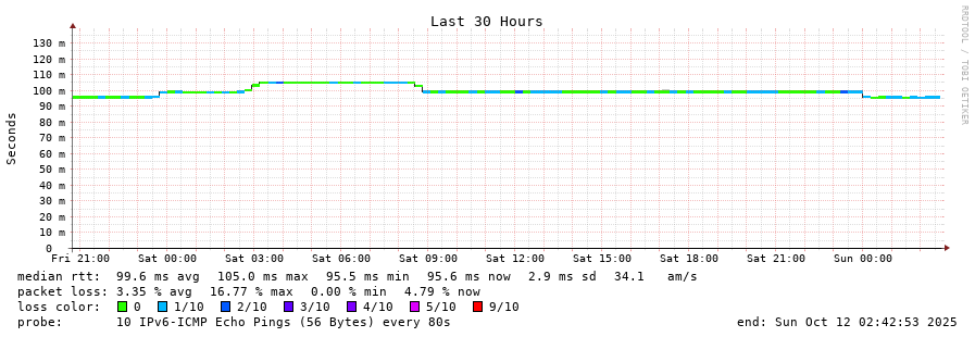 12 > 2607:5300:0:1:2::6c5 (2607:5300:0:1:2::6c5) [AS16276] 99.667ms 99.710ms 99.505ms