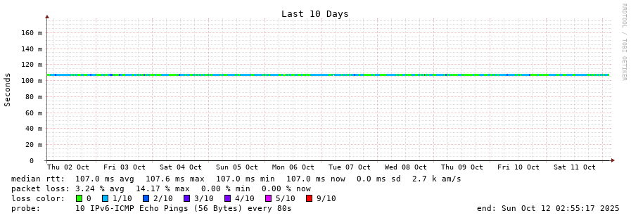 13 > 2604:2dc0:307::2:0:377 (2604:2dc0:307::2:0:377) [AS16276] 106.905ms 107.075ms 106.840ms