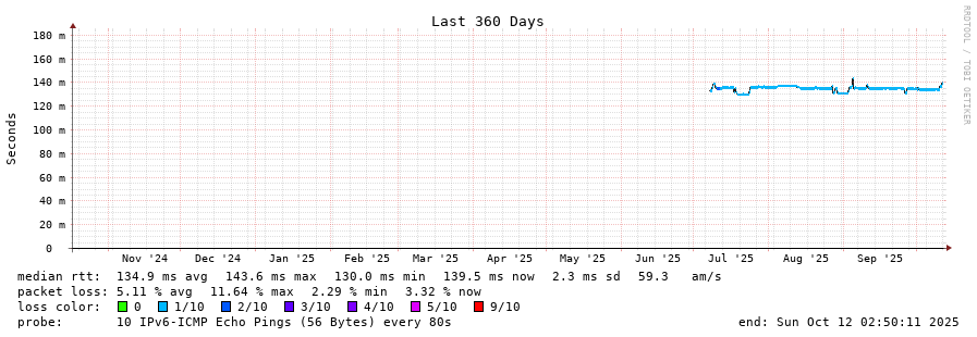 traceroute to 2604:2dc0:306::2:0:9a (2604:2dc0:306::2:0:9a), 30 hops max, 80 byte packets - Generated at 2025-10-12 00:45:01