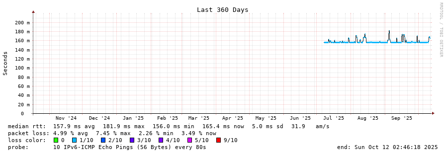 traceroute to 2604:2dc0:301::2:0:376 (2604:2dc0:301::2:0:376), 30 hops max, 80 byte packets - Generated at 2025-10-12 00:45:01