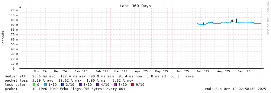 traceroute to 2604:2dc0:303::2:0:3d (2604:2dc0:303::2:0:3d), 30 hops max, 80 byte packets - Generated at 2025-10-12 00:45:01