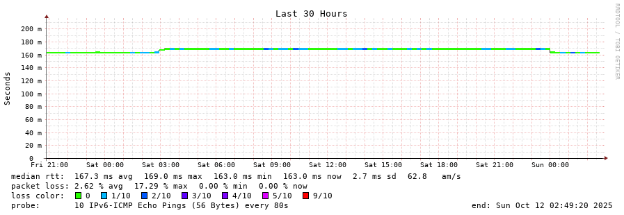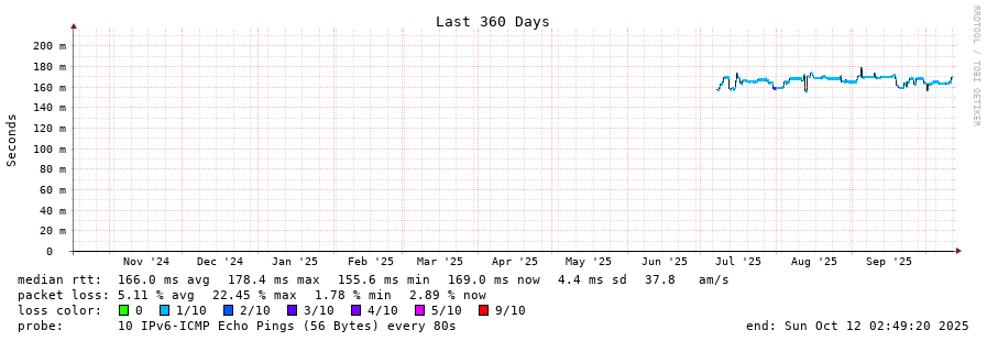 traceroute to 2604:2dc0:305::2:0:2b0 (2604:2dc0:305::2:0:2b0), 30 hops max, 80 byte packets - Generated at 2025-10-12 00:45:01