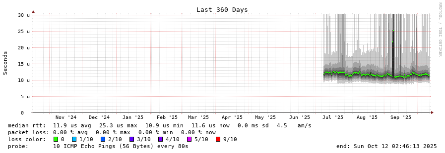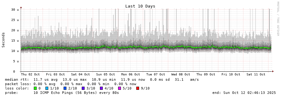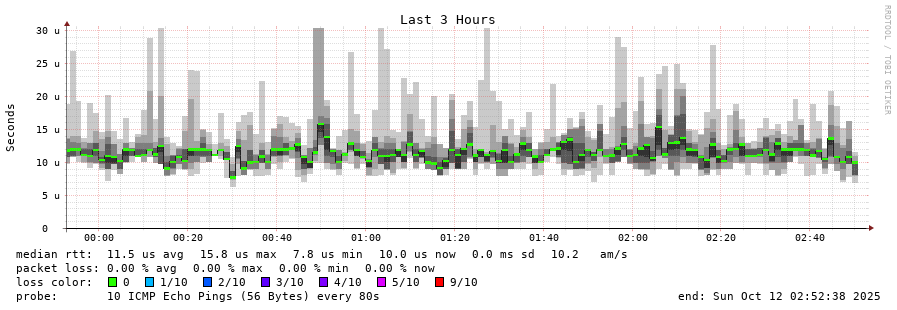 traceroute to 141.227.134.145 (141.227.134.145), 30 hops max, 60 byte packets - Generated at 2025-10-12 00:45:01 3 > 141.227.134.145 (141.227.134.145) [AS16276] 0.042ms 0.010ms 0.003ms