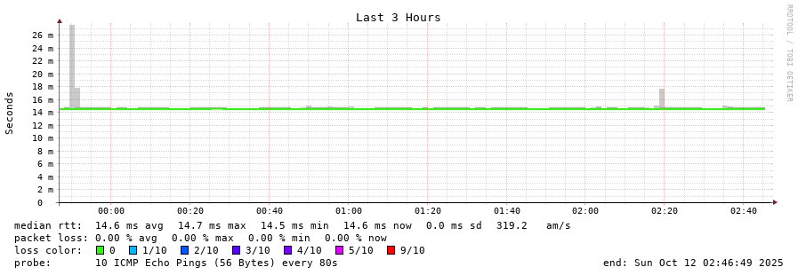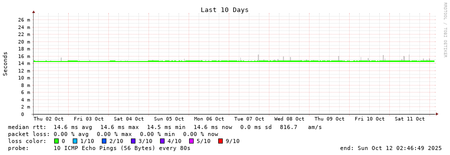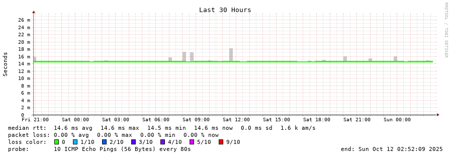 traceroute to 141.227.138.89 (141.227.138.89), 30 hops max, 60 byte packets - Generated at 2025-10-12 00:45:01 3 > 4 > 5 > 6 > 7 > 8 > 141.227.138.89 (141.227.138.89) [AS16276] 14.599ms 14.781ms 14.569ms