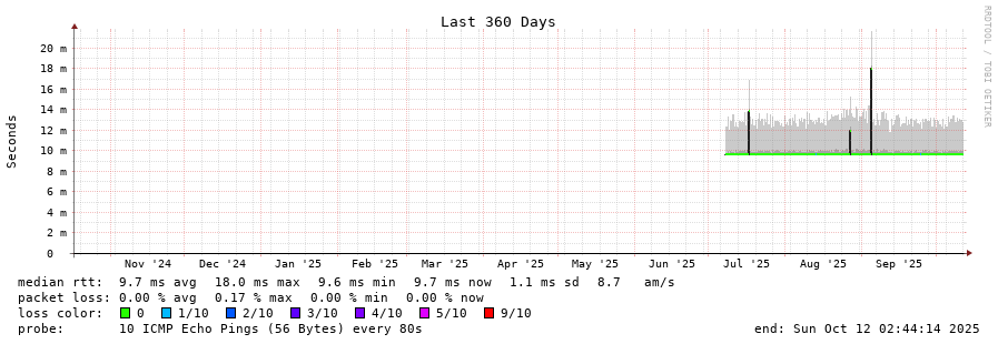 traceroute to 57.128.121.48 (57.128.121.48), 30 hops max, 60 byte packets - Generated at 2025-10-12 00:45:01 3 > 4 > 5 > 6 > 7 > fra-fra15-pb2-ptx.de.eu (57.128.121.48) [AS16276] 9.711ms 9.661ms 9.647ms