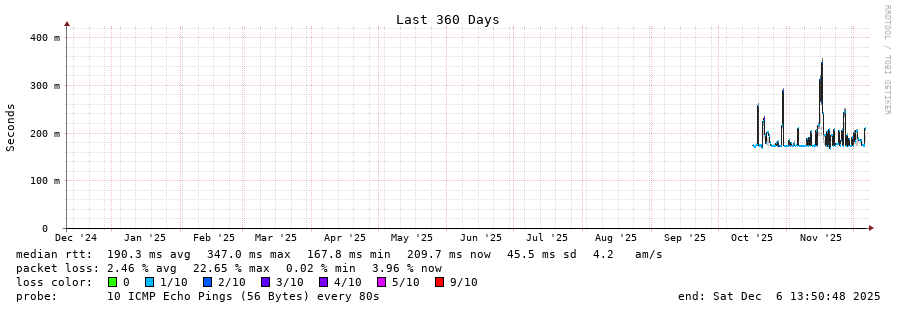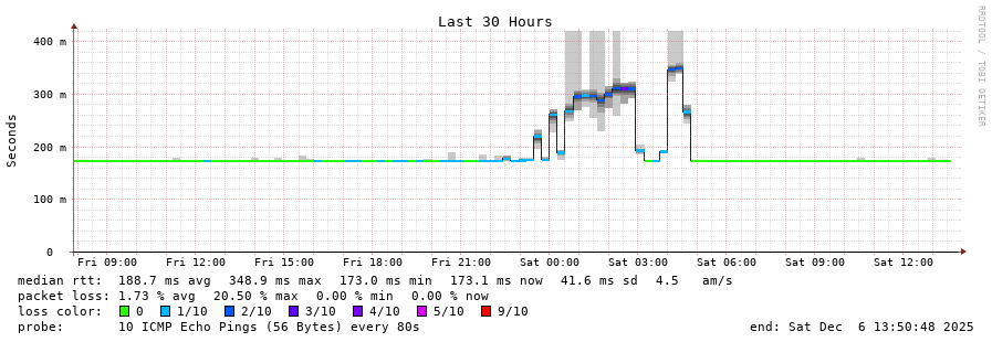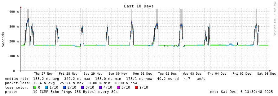 11 > 179.51.112.214 (179.51.112.214) [AS263210] 173.405ms 173.400ms 173.380ms