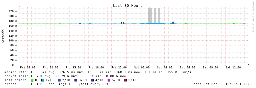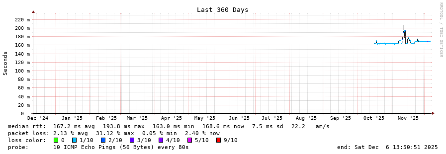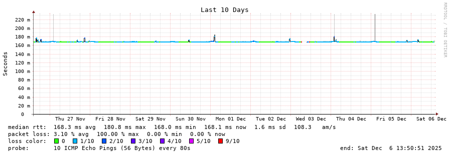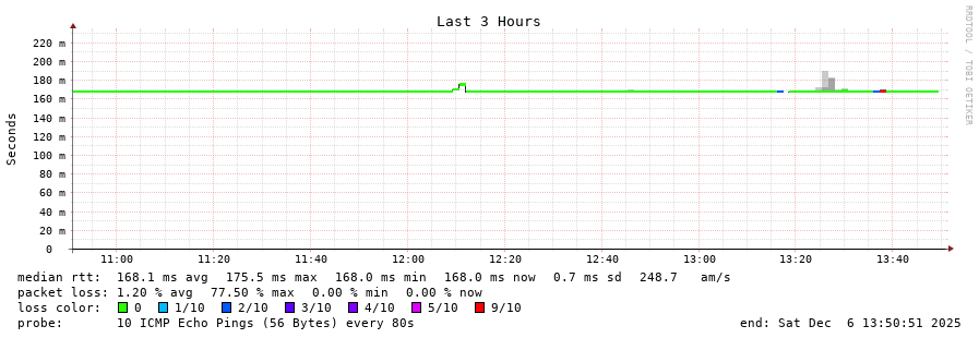 12 > 181.225.81.174 (181.225.81.174) [AS263210] 168.142ms 168.055ms 168.074ms