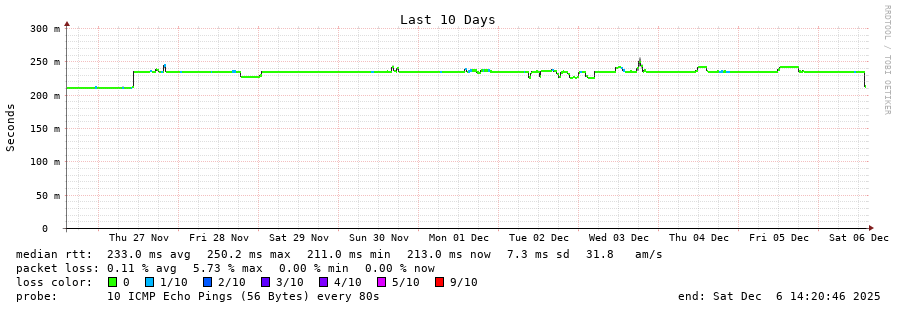 8 > 100.64.193.250 (100.64.193.250) [AS270118] 95.593ms 95.425ms 97.930ms