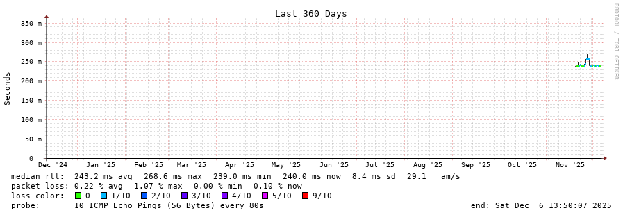 14 > 170.79.84.235 (170.79.84.235) [AS266284] 240.362ms 240.329ms 240.335ms
