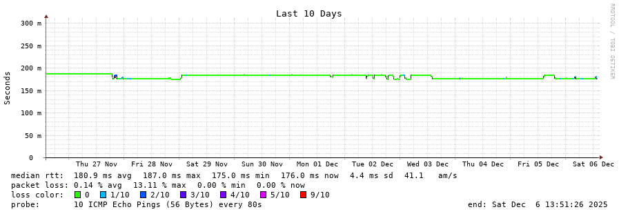 11 > ipv4.nyiix.internexa.net (198.32.160.173) [AS13538] 128.105ms 128.102ms 128.124ms