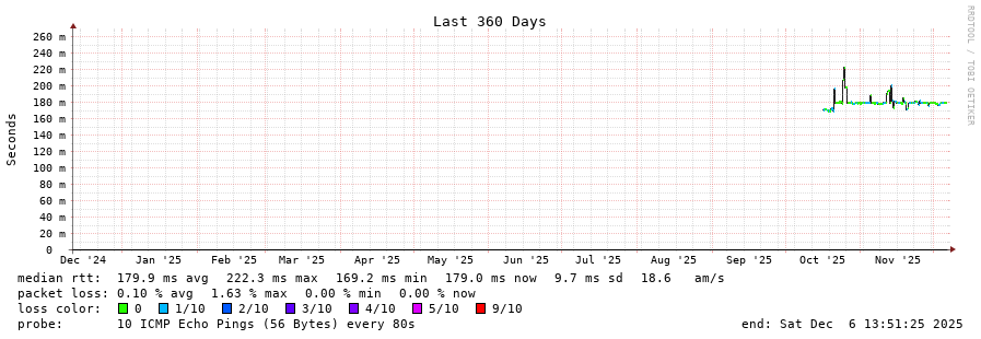 traceroute to 130.250.228.10 (130.250.228.10), 30 hops max, 60 byte packets - Generated at 2025-12-06 13:45:01