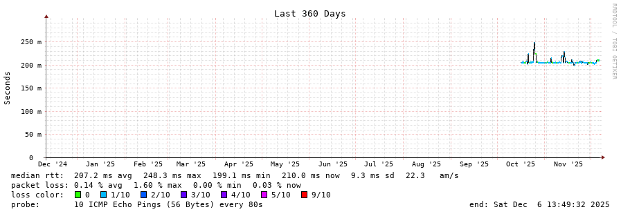 16 > 191.97.49.170 (191.97.49.170) [AS28032] 210.015ms 209.931ms 209.906ms