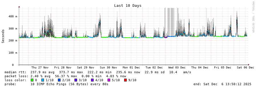 10 > 200.16.69.123 (200.16.69.123) [AS52320] 235.430ms 235.407ms 235.225ms