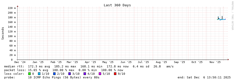 traceroute to 200.95.176.148 (200.95.176.148), 30 hops max, 60 byte packets - Generated at 2025-12-06 13:30:01