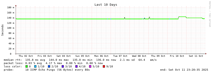 11 > 66.192.255.52 (66.192.255.52) [AS22362] 135.197ms 135.283ms 135.299ms