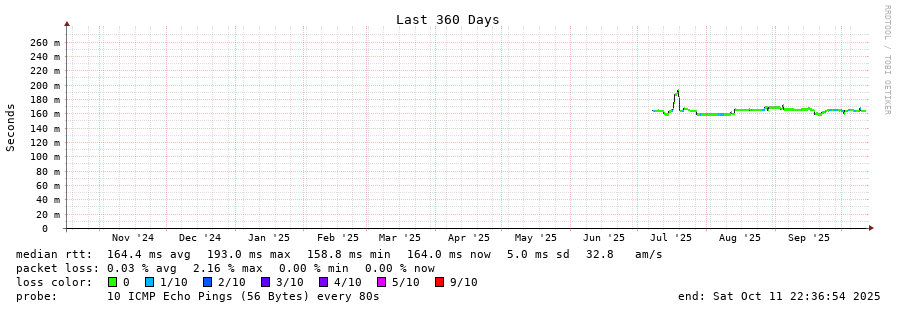 traceroute to 213.179.204.53 (213.179.204.53), 30 hops max, 60 byte packets - Generated at 2025-10-11 22:30:01
