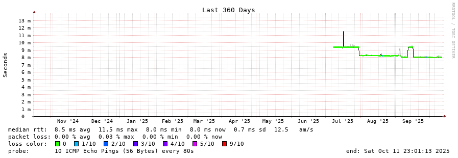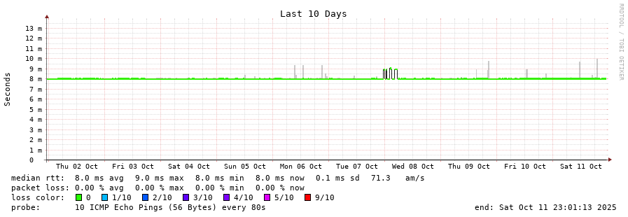 traceroute to 17.253.144.10 (17.253.144.10), 30 hops max, 60 byte packets - Generated at 2025-10-11 22:15:02 3 > apple.peering.cz (185.0.20.6) [*] 9.816ms 9.758ms 9.867ms 4 > apple.de (17.253.144.10) [AS714] 8.049ms 8.056ms 8.037ms