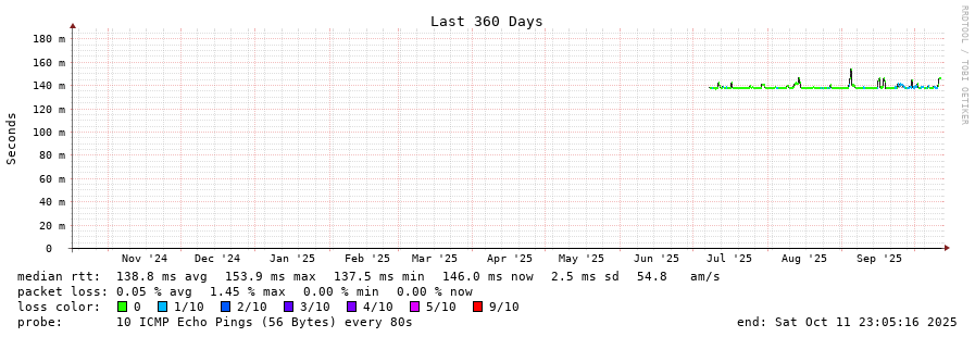 traceroute to 69.134.147.7 (69.134.147.7), 30 hops max, 60 byte packets - Generated at 2025-10-11 22:30:01