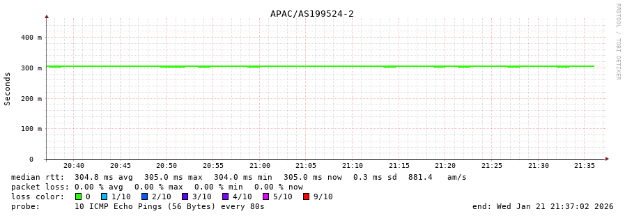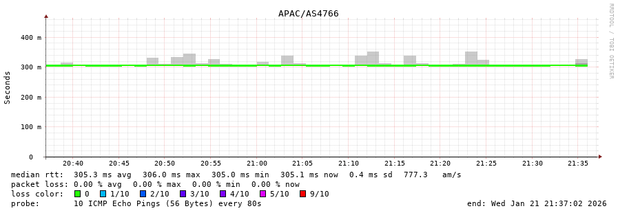 44. Max Roundtrip Time 0.305 seconds